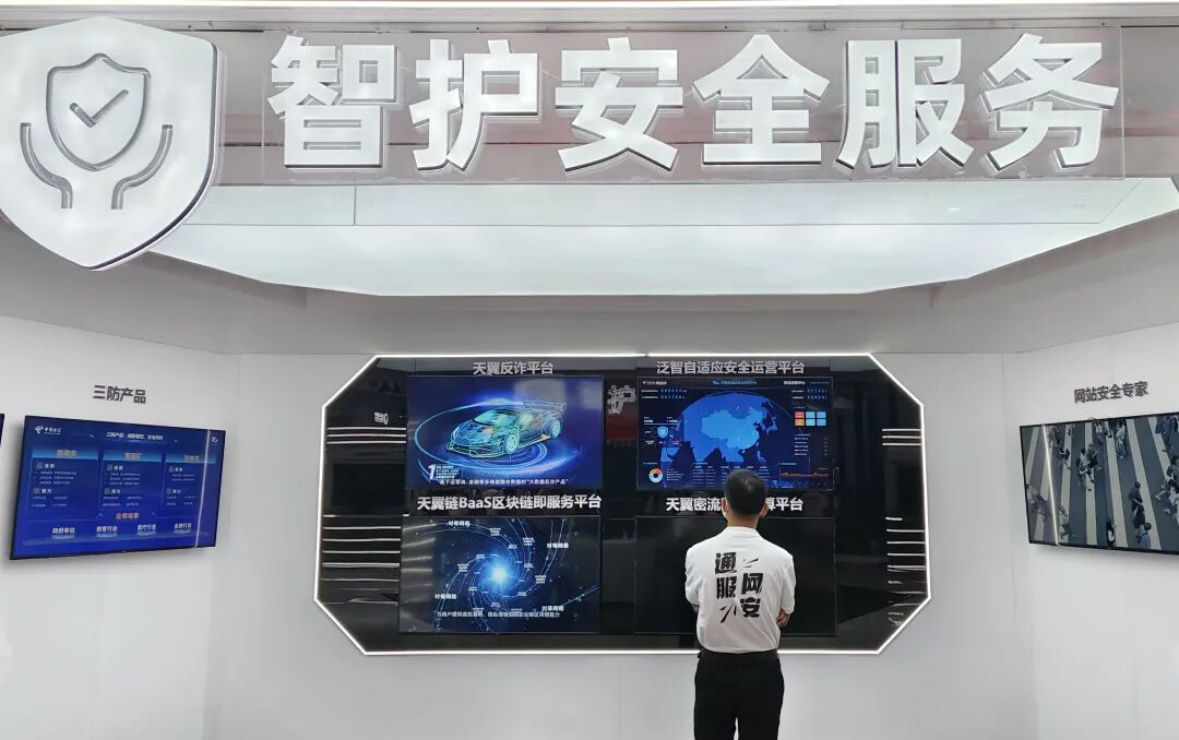 电信展台展示的智护安全服务。