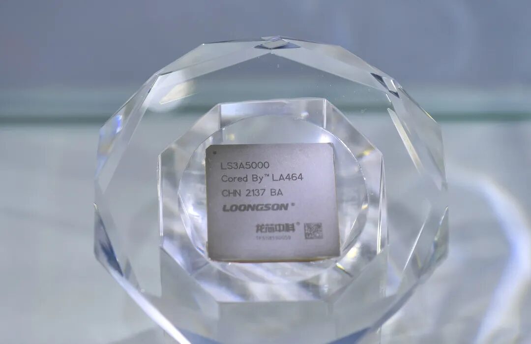 龙芯中科展台展示的自主研发的CPU处理器。