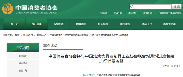 中国消费者协会联手中国焙烤食品糖制品工业协会,在中秋节前联合对月饼过度包装情况进行消费监督,倡导月饼产品回归食品本身属性和简约适度包装的理念。中消协还发动分布于全国的消费维权志愿者队伍,依照相关国家标准,结合自己的日常生活进行监督。同时,中消协还委托专业机构开展“扫网”行动,进行覆盖性调查,及时收集线索、发现案例,并于调查结束后面向社会公布调查结果。