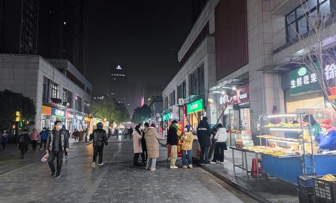 12月28日晚记者拍摄的合肥高新区的一条商业街。(新华社记者何曦悦 摄)