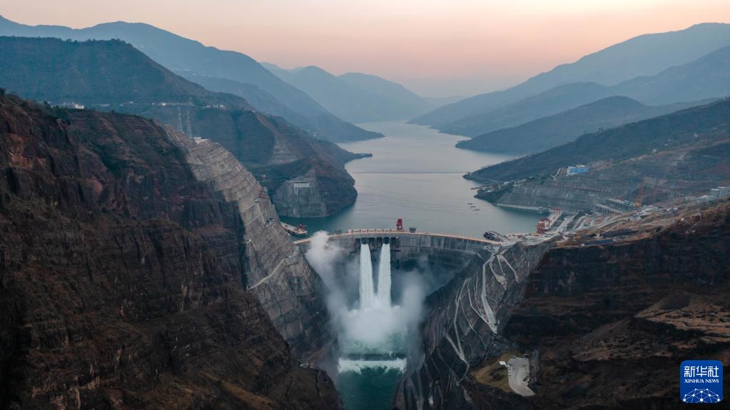 白鹤滩水电站一景(2022年12月19日摄,无人机照片)。新华社记者 胡超 摄