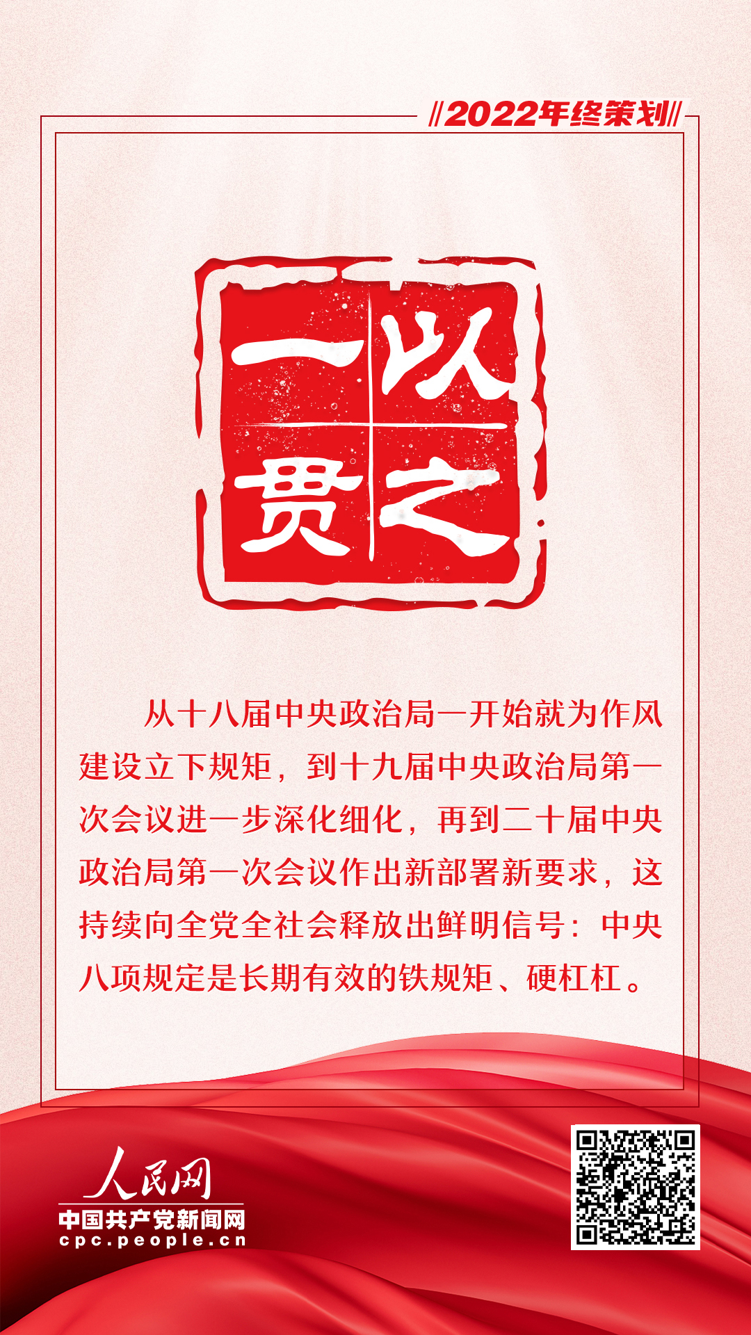 2022年,是中央八项规定出台的第十个年头。习近平总书记在党的二十大报告中告诫全党“时刻保持解决大党独有难题的清醒和坚定”,持续加强作风建设、密切党同人民群众的血肉联系,是题中之义、重中之重,必须坚持不懈推动落实中央八项规定精神。