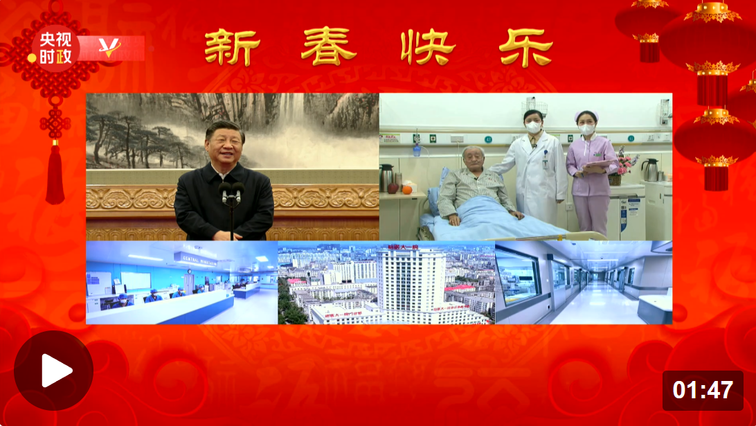 中华民族传统节日春节即将到来之际,中共中央总书记、国家主席、中央军委主席习近平通过视频连线看望慰问基层干部群众,向全国各族人民致以新春的美好祝福,祝各族人民身体健康、阖家幸福、事业进步、兔年吉祥!祝愿伟大祖国繁荣昌盛、国泰民安!