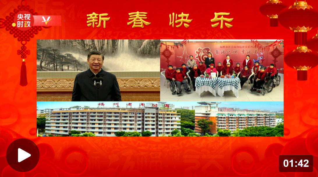 在福建省福州市社会福利院,在院老人和护理人员纷纷向总书记问好,习近平给大家拜年。