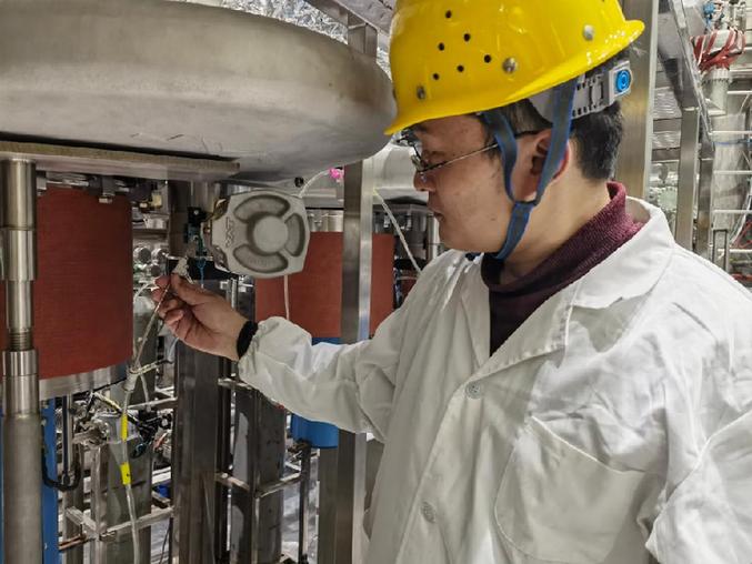 在中科院合肥物质科学研究院,轰鸣声从小岛西部的等离子体物理研究所装置大厅内传出。身着白大褂、头戴黄色安全帽的科研工作者正围着一个高11米的大“罐子”忙活。