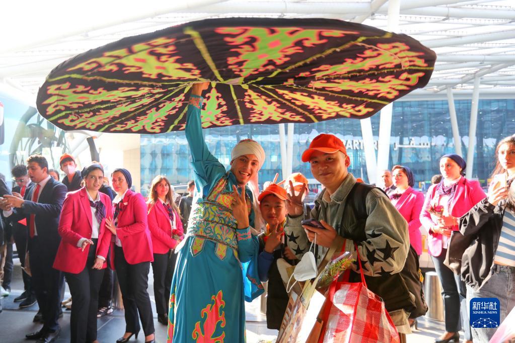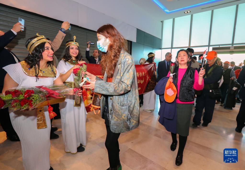 中国优化调整新冠疫情防控政策后首个赴埃及中国旅行团乘四川航空航班20日抵达开罗国际机场。埃及旅游和文物部等部门共同为中国游客举行欢迎仪式。