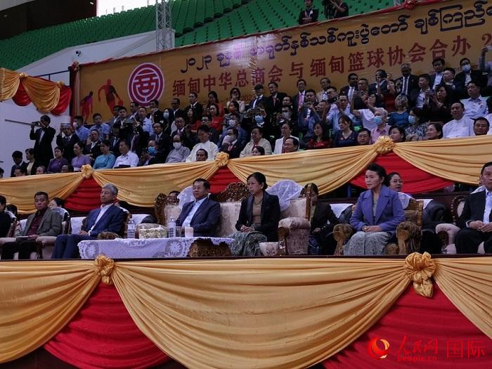 中缅嘉宾共同观看篮球友谊赛。人民网记者 李秉新摄