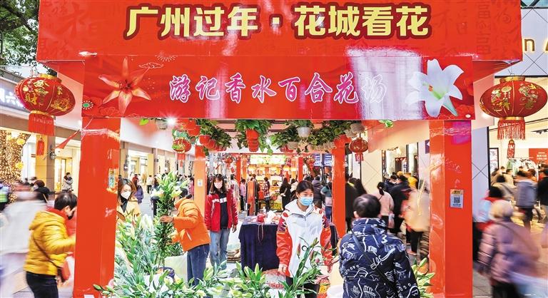 逛迎春花市,是广东当地春节期间重要的民俗活动,它融合了广州人“讲意头”的传统,深受群众喜欢。2007年,广州迎春花市成为省级市级非遗。2021年,“行花街”民俗被列入第五批国家级非物质文化遗产名录。