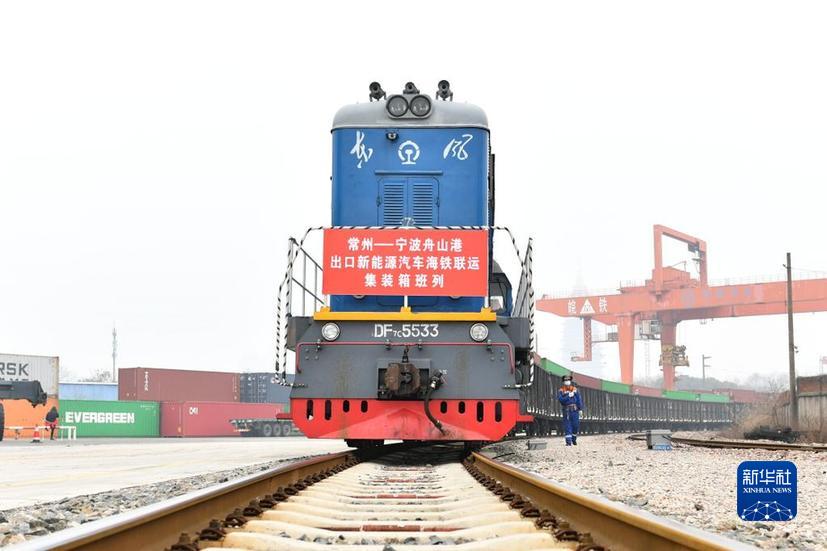 当日,一趟满载着120辆国产新能源汽车整车的海铁联运班列从江苏常州站铁路货场开出前往浙江宁波舟山港,到达宁波舟山港后该批次新能源汽车整车将通过海运形式出口至欧洲多国。