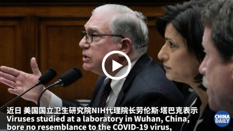 近日,美国国立卫生研究院NIH代理院长劳伦斯∙塔巴克表示,中国武汉实验室研究的病毒与新冠病毒没有任何相似之处。塔巴克周三在众议院能源和商业委员会的听证会上称,武汉实验室研究的病毒与新冠病毒在基因上是不同的,它们之间没有联系,把不同的病毒相提并论就像“说人等同于牛”。