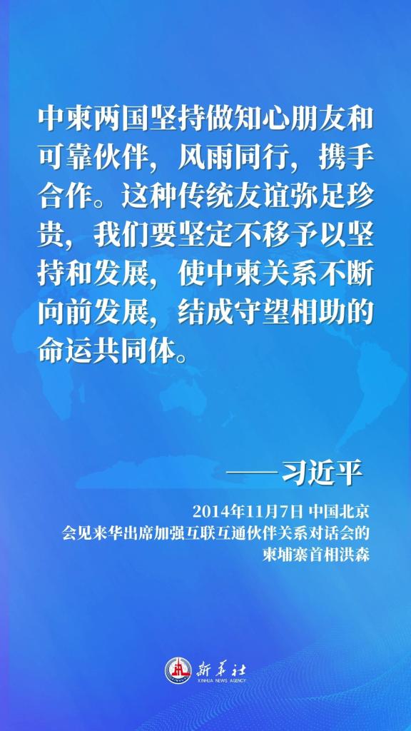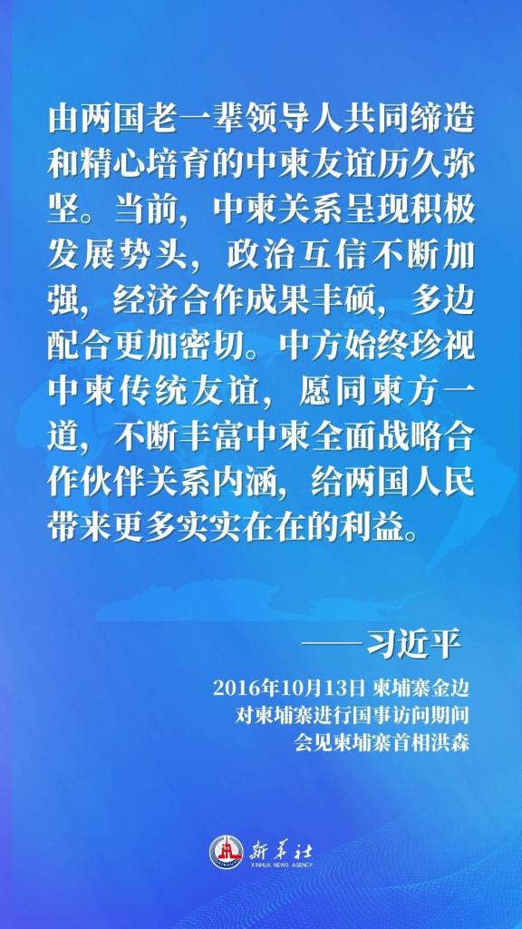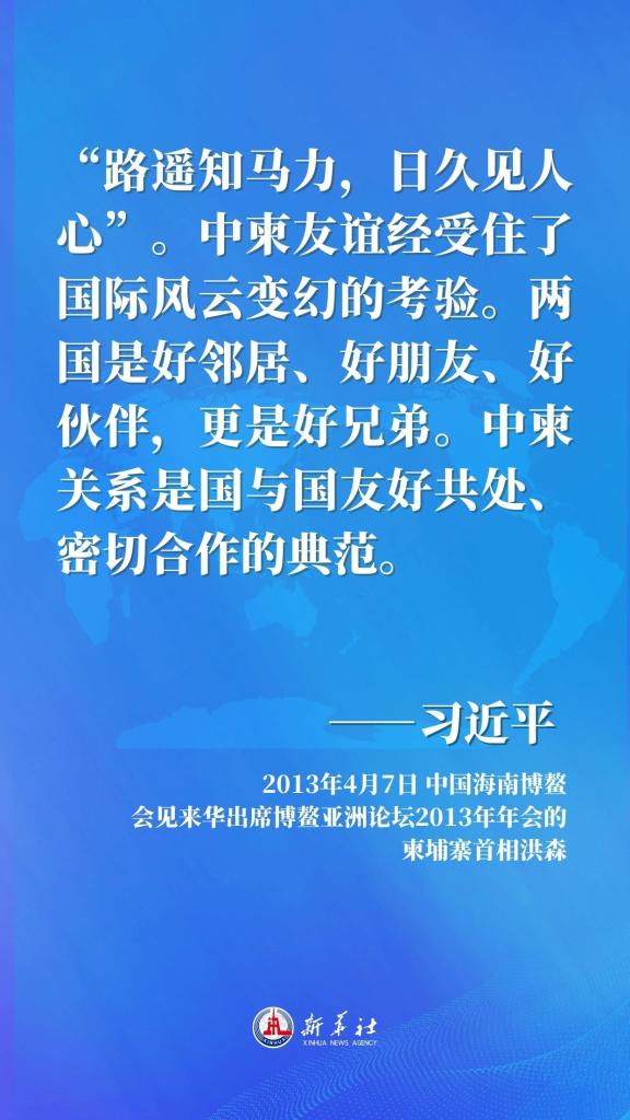 10日的会见中,国家主席习近平同柬埔寨首相洪森共同开启了中柬命运共同体建设新时代。回望过去10年,习近平主席同柬方高层密切互动,为推动中柬全面战略合作伙伴关系持续深入发展发挥重要战略引领作用,中柬传统友谊历久弥坚,中柬关系发展为构建新型国际关系树立典范——