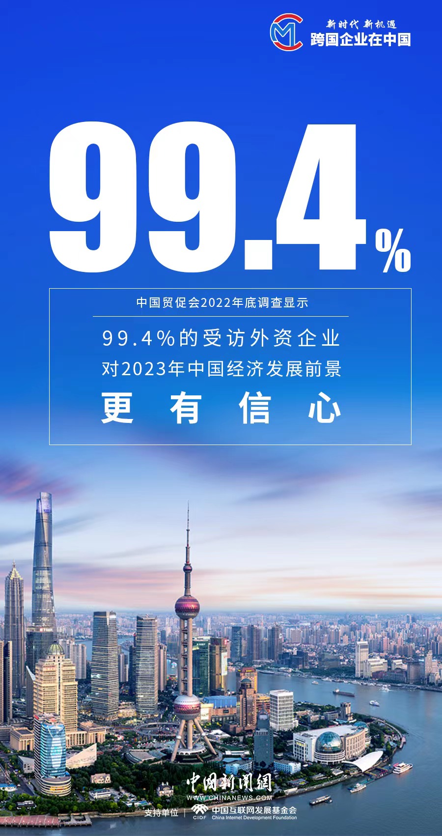 去年底,中国贸促会对160多家在华外资企业和外国商协会进行快速调研的结果显示,99.4%的受访外资企业对2023年中国经济发展前景更有信心,表示将继续在中国投资兴业,分享中国的发展红利。98.7%的受访外资企业表示将维持和扩大在华投资。