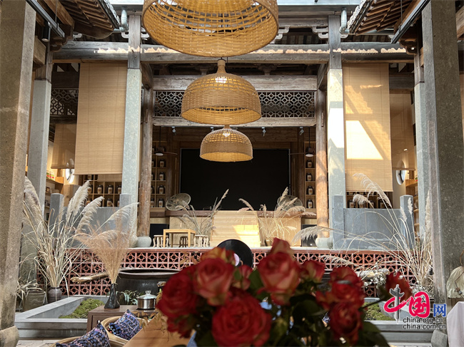 西溪南村的一处溪边文苑,原为一座古祠堂,在保护原有古建筑基础上开发为演艺活动小剧场、茶社等。中国网记者 吴佳潼 摄