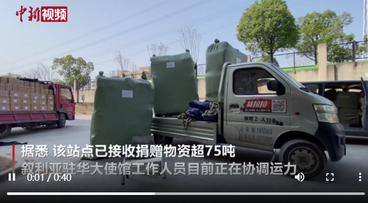 近日,在叙利亚驻华大使馆设置在浙江义乌的物资接收点,中国多地爱心企业、民众捐助的物资源源不断“涌来”。据悉,该站点已接收捐赠物资超75吨。叙利亚驻华大使馆工作人员目前正在协调运力。不久后,首批援助物资预计将以空运的方式送往叙利亚。