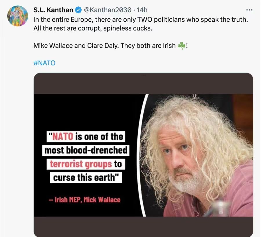 华莱士15日在欧洲议会全会上发言时指出,在俄乌冲突中,西方领导人应该追求和平,而不是一味增加军援。他批评说,明明应该呼吁停火与和谈,“西方却在不计后果的战争氛围中越陷越深”,“西方领导人在把这场战争拖得无休无止”,“你们先提供了头盔,现在又提供坦克,我为欧洲感到担忧”。