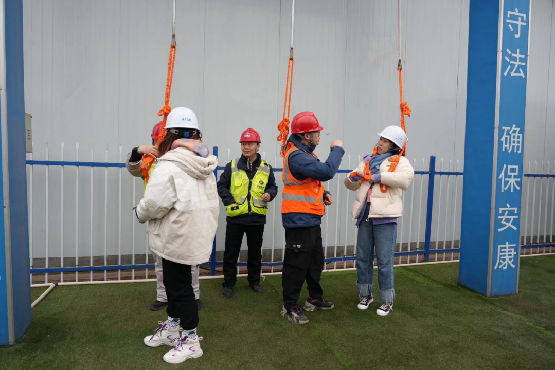 为了增强施工作业人员的安全意识,金刚沱泵站施工现场还设置了施工安全体验区。每一名施工作业人员都要在体验区进行电击、高空坠落、安全帽击打、火灾、穿越隧道等施工作业中常见安全事故的模拟训练。