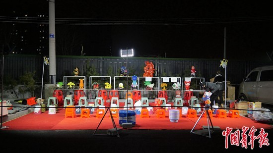 2月10日,在日落集市,一位摊主结束了当日的摆摊,正在收拾摊位。中青报·中青网见习记者 赵丽梅/摄