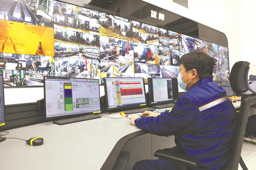2月16日,马钢特钢智控中心员工正在对优棒产线生产进行远程控制。 记者 李 季 摄