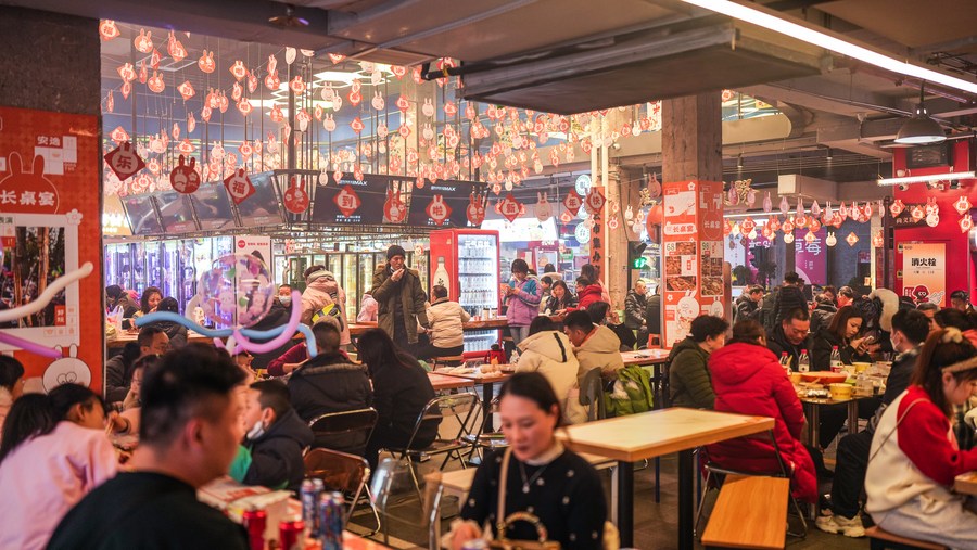 1月23日,消费者在贵阳市南明区“青云市集”品尝特色美食。新华社记者陶亮摄