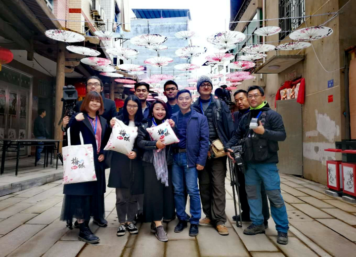 在福州闽清,曾芝颖(前排左三)与两岸工作伙伴共同完成“梅城印记”乡建项目。(受访者供图)