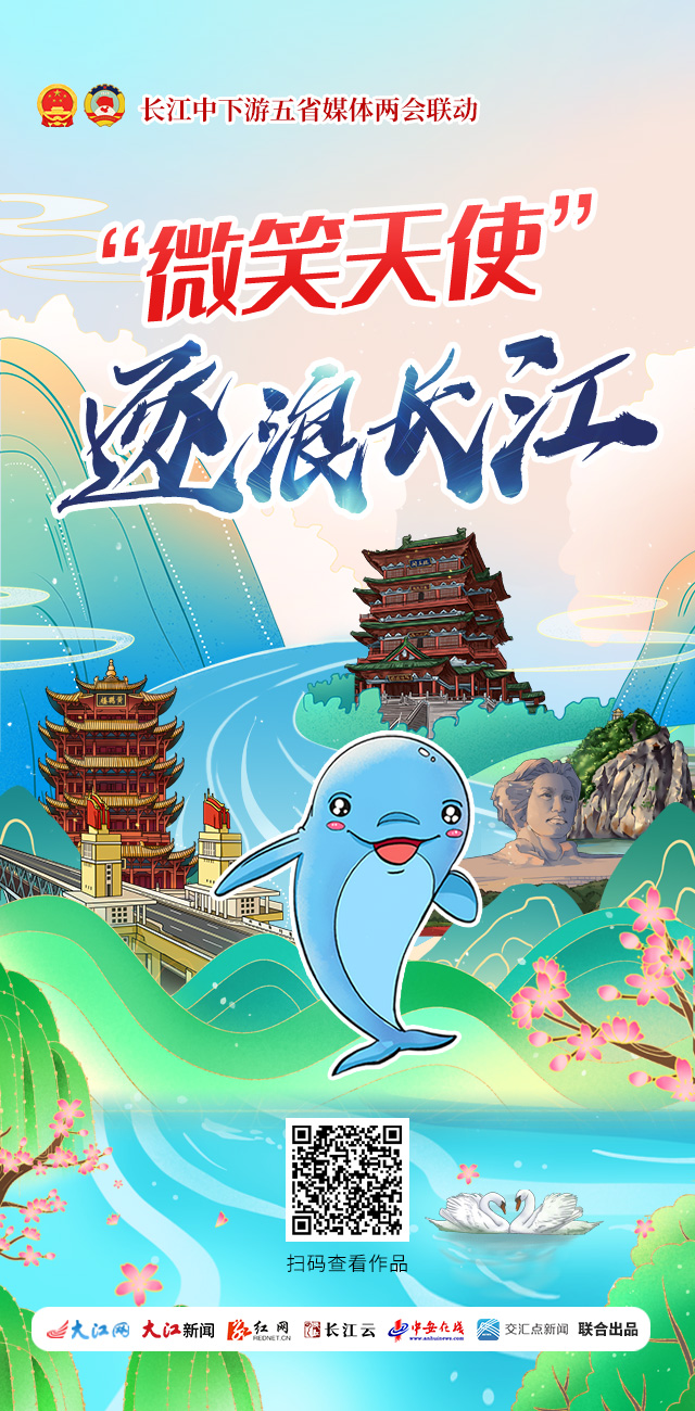 长江江豚被称为“微笑天使”,是长江生态的“晴雨表”。近年来,长江中下游省份江豚逐浪的生动景象频频出现,彰显长江大保护的成效。全国两会期间,大江网、大江新闻客户端联合湖南红网、湖北长江云客户端、江苏交汇点新闻客户端、安徽中安在线等长江中下游主流新媒体,推出全国两会五省联动特别策划报道《“微笑天使”逐浪长江》,将镜头对准江豚,用手绘江豚“逐浪”长江的生动形式,通过专题采访全国人大代表和政协委员,共话长江经济带生态保护与绿色发展,展现长江经济带的绿色“蝶变”。