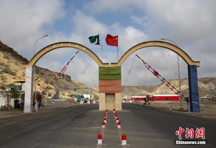 资料图:瓜尔达港出入口的拱门。瓜尔达港是阿拉伯海沿岸的一座天然不冻良港,也是中巴经济走廊的南端起点。中新社记者 刘关关 摄