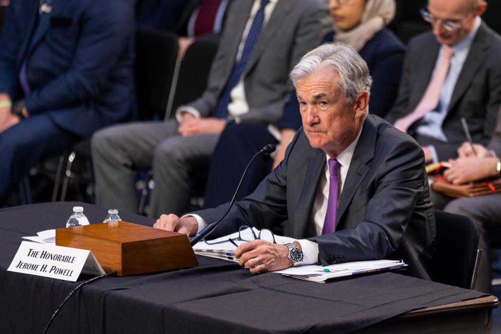 3月7日,美国联邦储备委员会主席鲍威尔在华盛顿的美国国会出席听证会。(新华社发,亚伦摄)