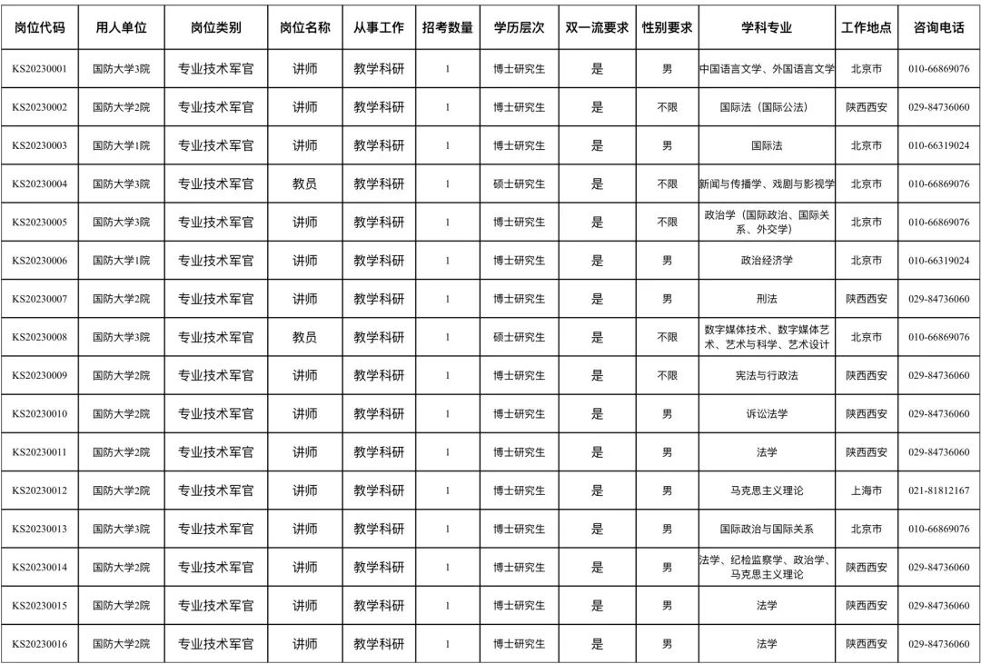 2023年国防大学直接选拔招录普通高等学校应届毕业生工作最终解释权归国防大学政治工作部。