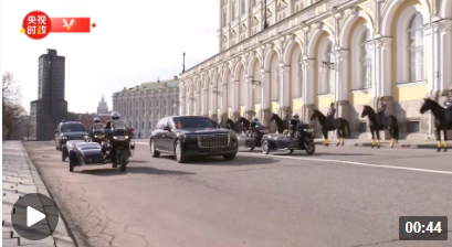 当地时间3月21日下午,习近平主席的车队抵达克里姆林宫,将出席俄罗斯总统普京在乔治大厅举行的欢迎仪式。