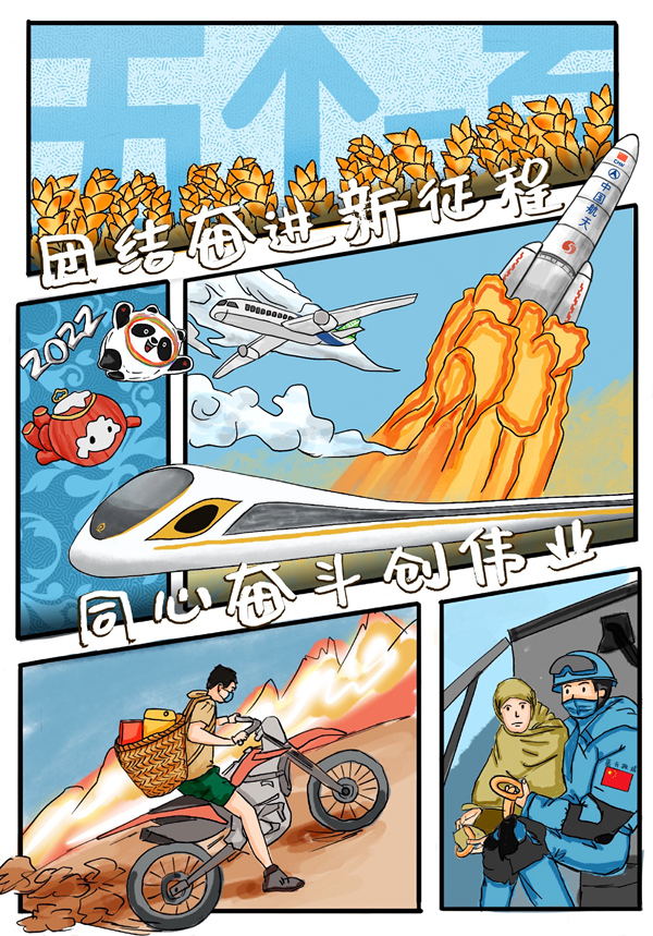 新时代十年来,党带领全国各族人民撸起袖子加油干,风雨无阻向前行,面对国际国内各种风险挑战,采取一系列战略性举措,推进一系列变革性实践,实现一系列突破性进展,取得一系列标志性成果。中国航天再创佳绩,粮食生产实现“十九连丰”,“复兴号”高铁驰骋不息,首架C919大飞机正式交付……一个真实立体全面的中国,展现在世界面前。新时代的伟大成就是党和人民一道拼出来、干出来、奋斗出来的,“五个一百”正能量作品就是中华儿女共同团结奋斗的生动缩影,它如星星之火,以燎原之势让网络空间充满奋进活力,展现着中国人民“越是艰险越向前”的顽强笃定。