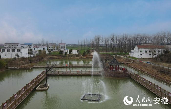 无人机视角下的关湖村心乐湖,风景优美。人民网 王晓飞摄