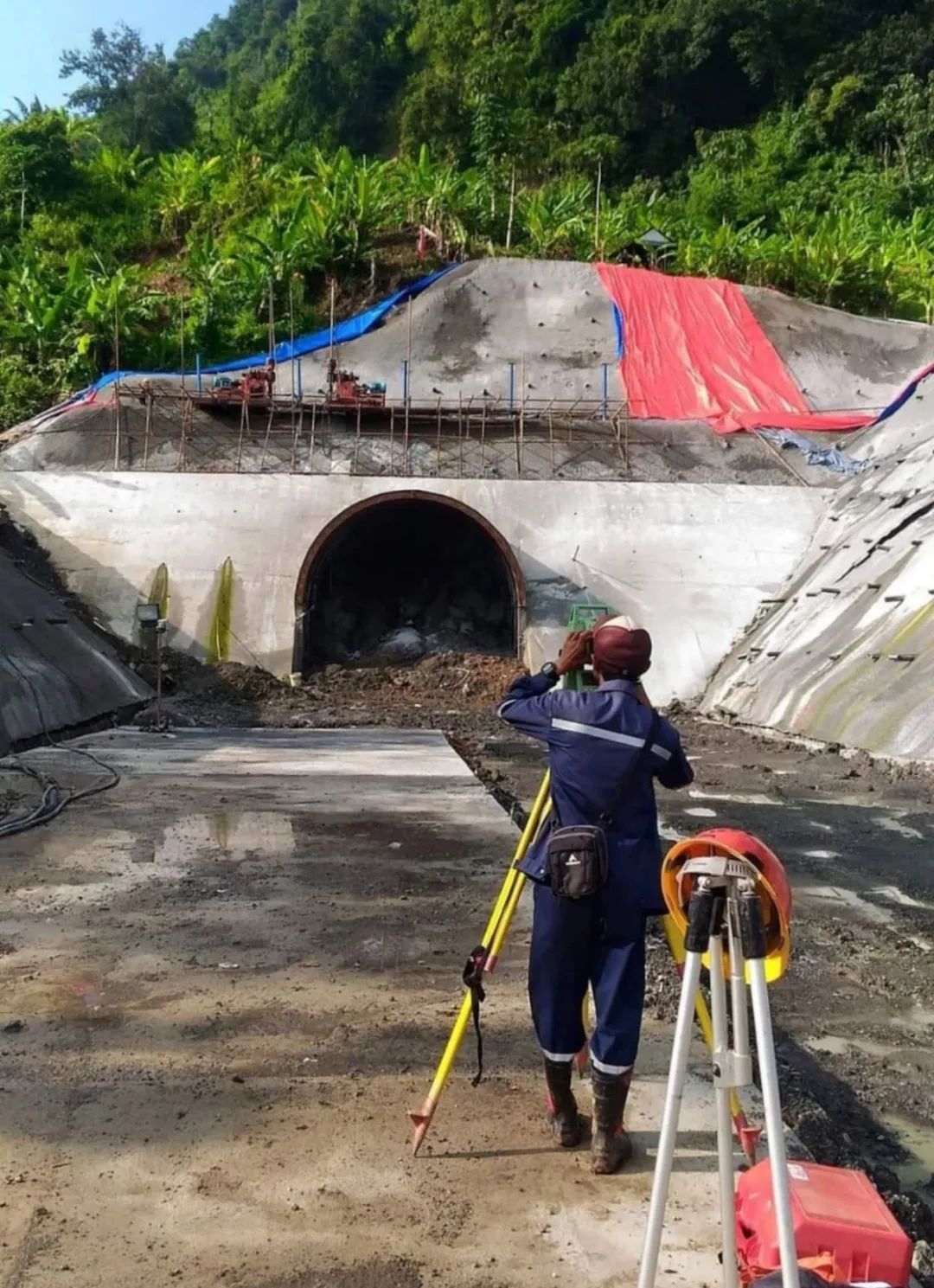 阿赛普·塔当在加蒂格迪水电站项目施工现场进行测量工作。(受访者供图)