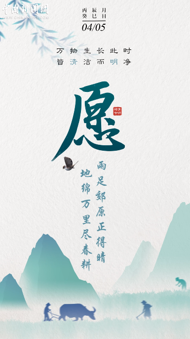 万物生长此时,皆清洁而明净,故谓之清明。桐花开,虹始见,草长莺飞时,携好友二三逐红花,穿垂柳,纷纷春雨和缕缕清风化尽了路上行人的哀愁事。今日清明,愿万里气清景明,你我心清目明。