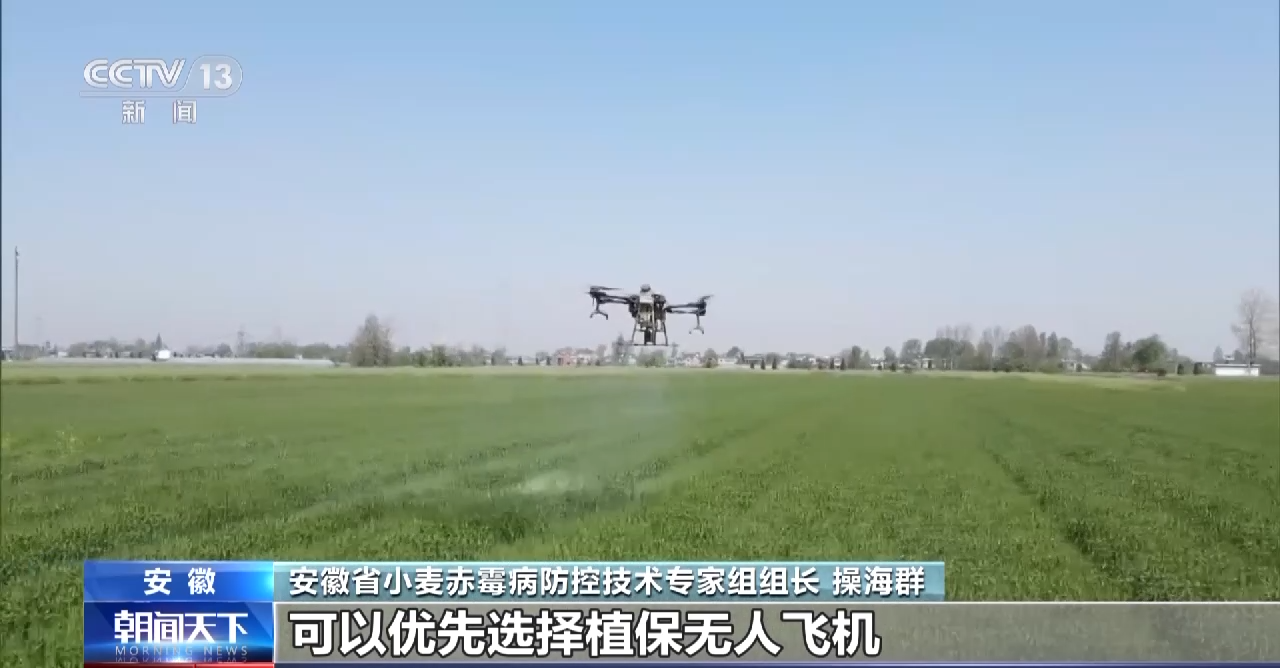 安徽省小麦赤霉病防控技术专家组组长 操海群:从技术层面上面来讲,在小麦赤霉病防控的时候,可以优先选择植保无人机,自走式喷杆喷雾机,像这样一些高功效的施药机械,这样可以保证施药效果。