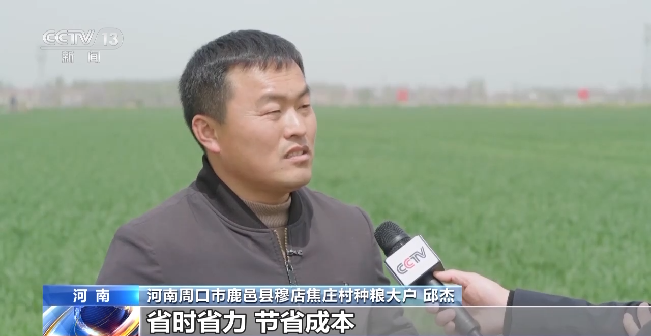 河南周口市鹿邑县穆店焦庄村种粮大户 邱杰:省时省力,节省成本,一亩地能节省4块钱左右,我种了将近2000多亩地,一季下来就可节省8000—10000块钱。