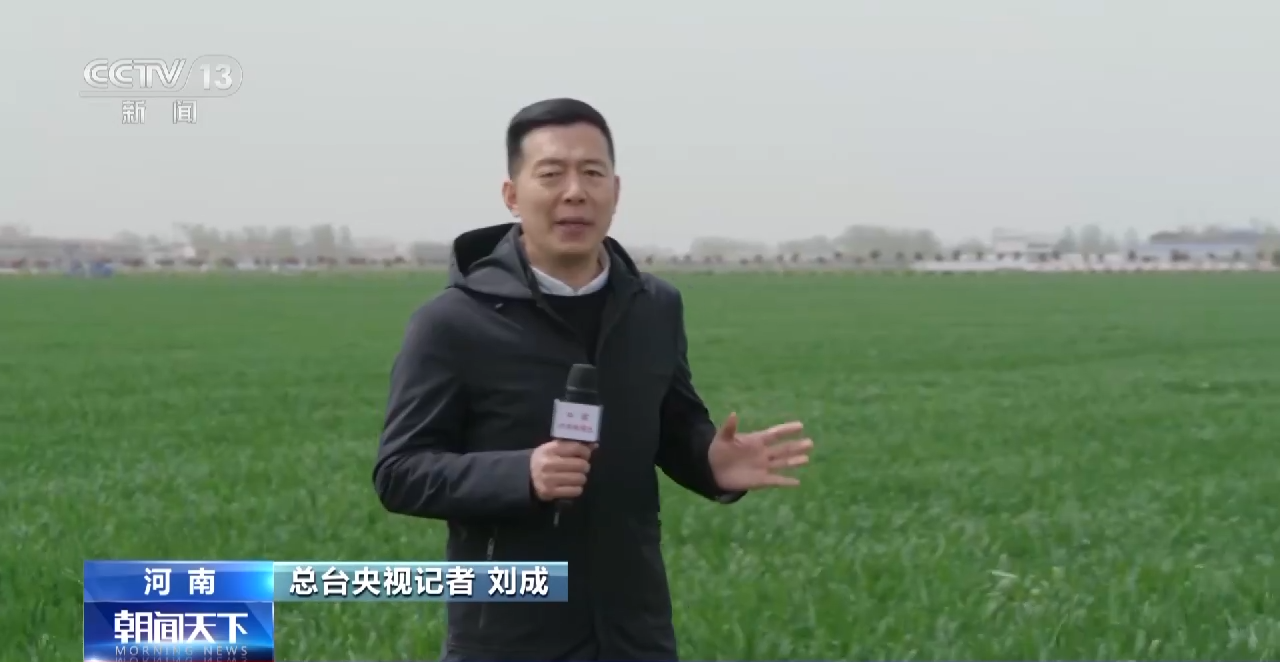 总台央视记者 刘成:我现在是在河南鹿邑县焦庄村的一块万亩高标准农田里,当地的农民正在利用多光谱无人机,对小麦进行病虫害防治,这种机器能根据小麦的长势变量施药,比一般的无人机飞防可减少30%的用药量。
