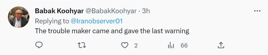 网友巴巴克·库希亚尔说:“制造麻烦的人来发最后通牒了。”