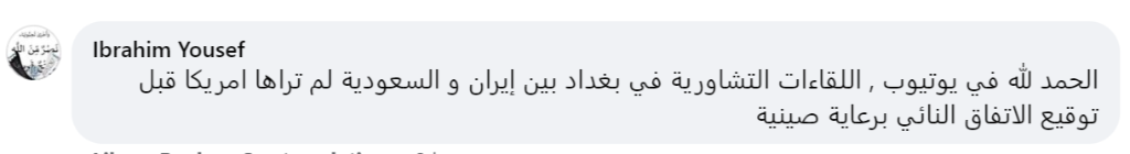 网友易卜拉欣·尤素福一语道破美国着急的原因:“此前沙特和伊朗在巴格达多轮接触美国看不见,中国一出面他们马上就关注到了。”