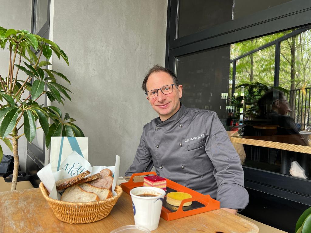 “老梦面包”创始人莫雷尔坐在面包店外的露天座位上。新华社记者崔可欣摄