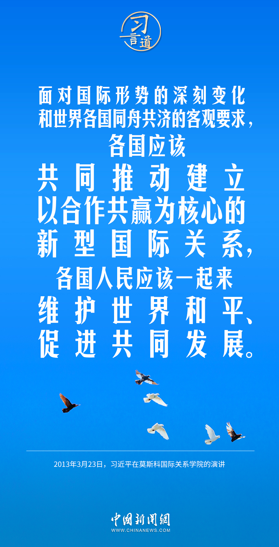 当前,世界进入新的动荡变革期。习近平主席多次强调“合作共赢”的中国主张,倡导各国一起维护世界和平、促进共同发展。