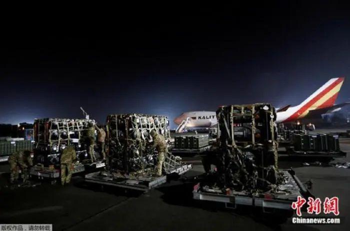 资料图:美国飞机将军事援助物资运抵乌克兰基辅鲍里斯波尔国际机场。