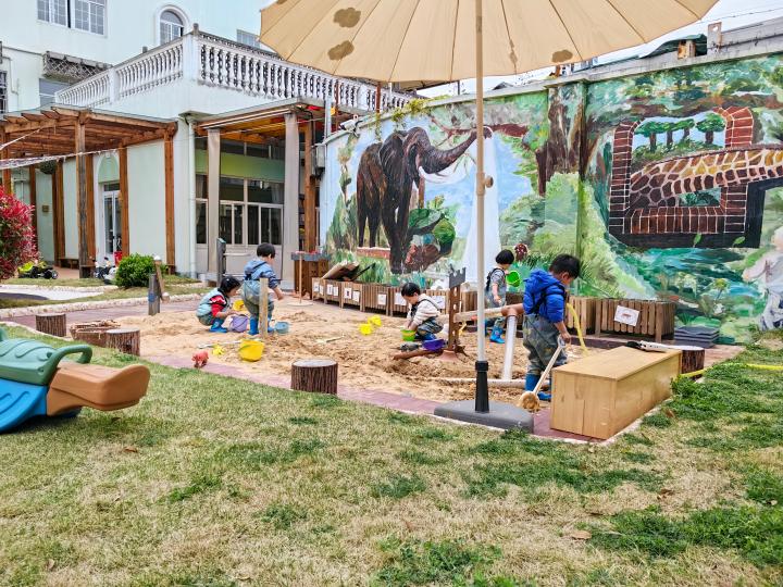 在上海市大宁国际第四幼儿园,托班幼儿与小班幼儿采取混龄编班的模式,共同开展游戏和运动。记者在园内看到,30月龄大的铭铭穿着雨鞋在玩沙水泥游戏,和小伙伴一起把沙变成泥,玩得不亦乐乎。