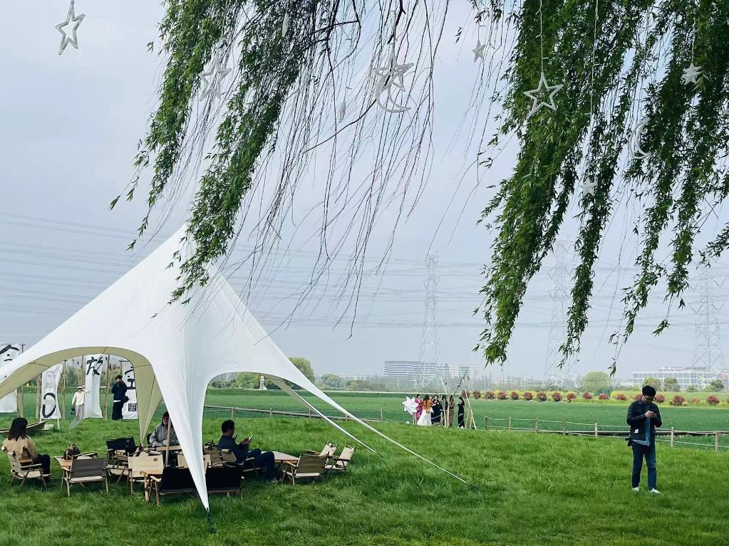 除了能度假休闲,欢嘻星球农场内还搭起了户外直播棚。“我们目前承接了很多服装品牌的户外直播,很多直播团队就是看中了这里的美丽风景,而且很多直播间的消费者也希望看到,自己买的衣服在户外穿着是否好看。”刘斌表示,今年四月份,农场已经开展了10余场直播,后面还将承办户外婚礼等活动,“微度假”带来的新路子,为农场增加了不少收入。
