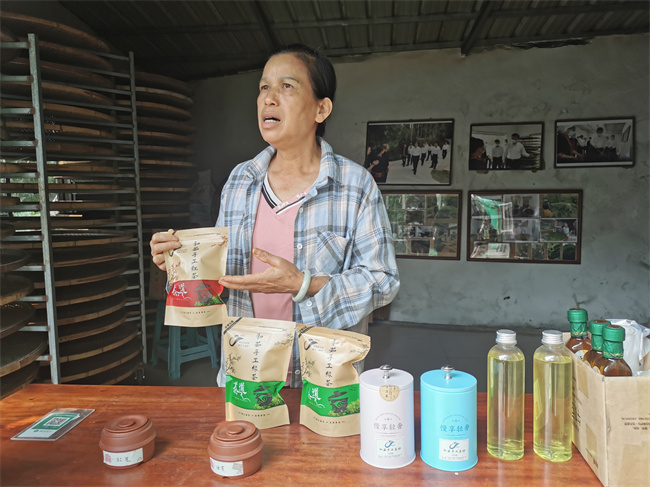 王菊茹介绍自己手工制作的茶叶。人民网记者 符园园摄