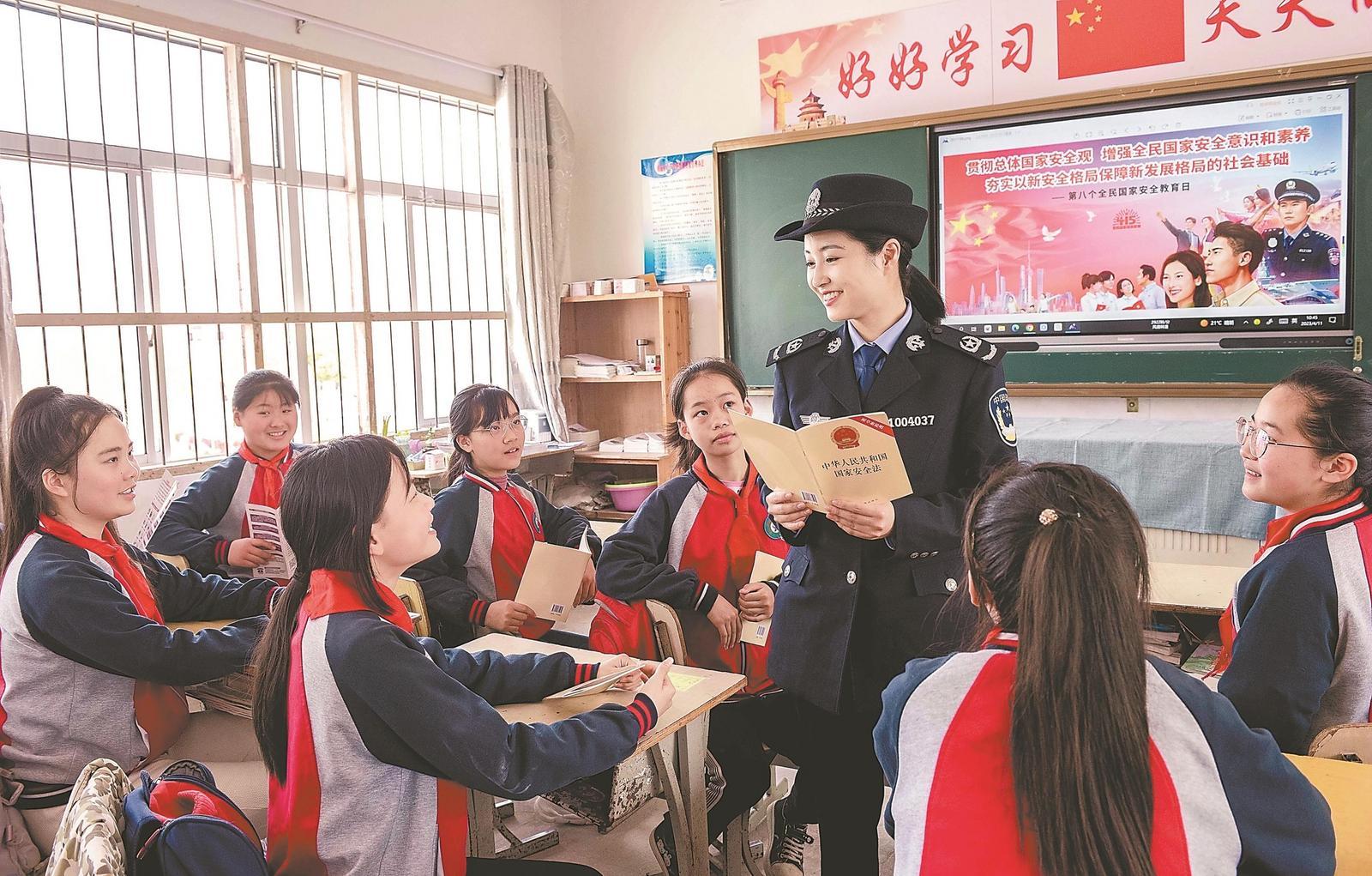 4月15日是第八个全民国家安全教育日。图为4月11日,含山县司法局、姚庙中心学校联手开展普法宣传活动。司法工作者来到校园,向学生宣传国家安全法、网络安全法等法律知识。本报通讯员 欧宗涛 甘 娟 摄