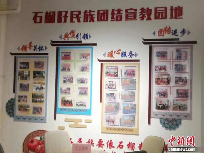 楼门里的石榴籽民族团结宣教园地。中新网记者 谢艺观 摄