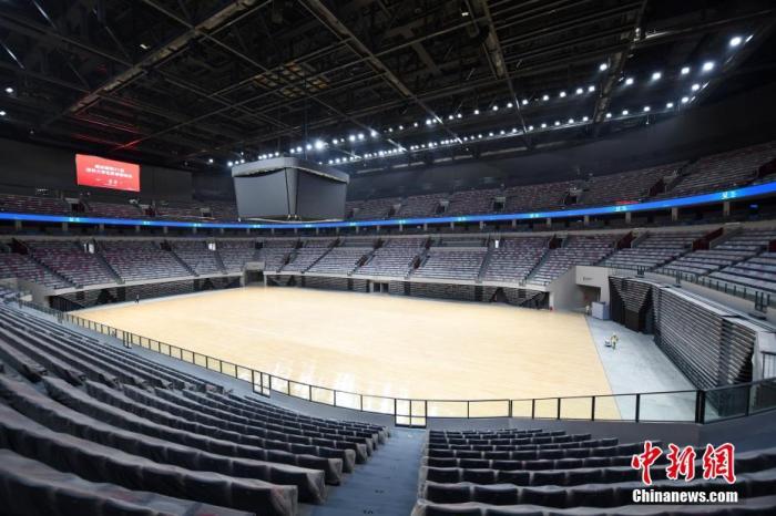 资料图:图为工作人员在东安湖体育公园的多功能体育馆内忙碌。中新社记者 张浪 摄