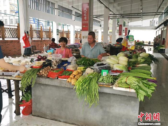 社区新建的农贸市场里摆满各种新鲜的蔬菜。中新网记者 谢艺观 摄