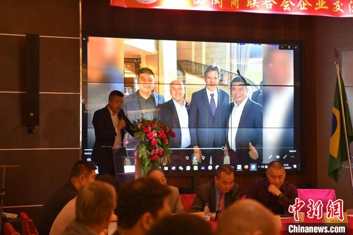 当地时间21日,巴西闽商联合会企业交流座谈会在圣保罗举行。图为巴西闽商联合会会长陈维雨致辞。 林春茵 摄