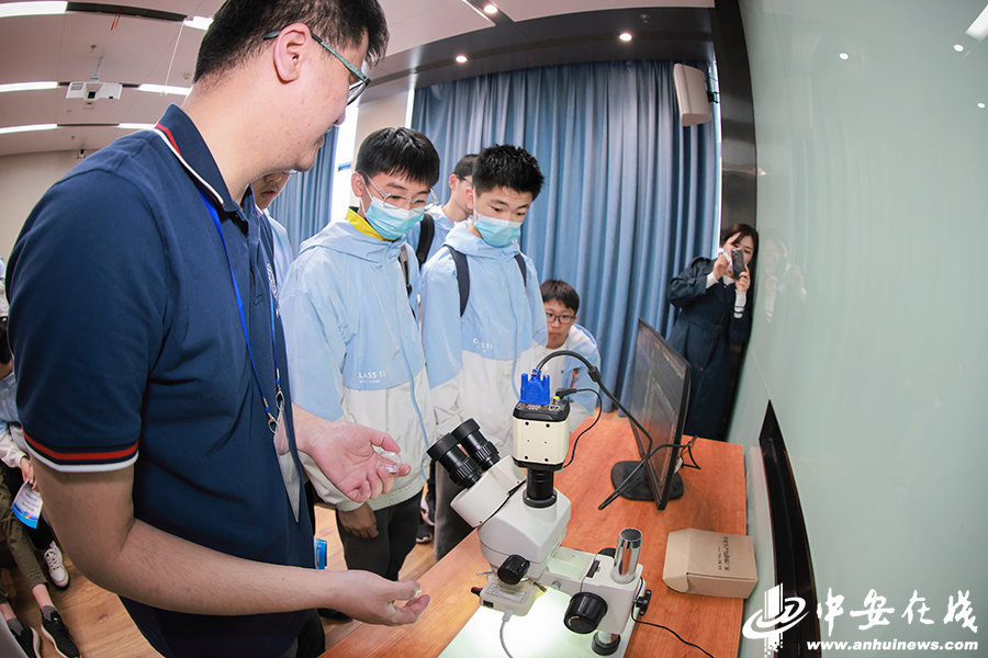 今日之合肥,“芯屏汽合”战新产业布局已经广为人知。在核探测与核电子学国家重点实验室科普点,该实验室的志愿者们正在带领小朋友们探索微观芯片世界。“我们主要带领大家利用显微镜观看科大自主研发的芯片,给小朋友们带来微观芯片方面的科普知识。”该实验室的志愿者同学告诉记者,如今国家十分重视芯片技术的发展,希望这次科普可以让孩子们从小对芯片产生兴趣,引导他们未来投身芯片事业的发展。